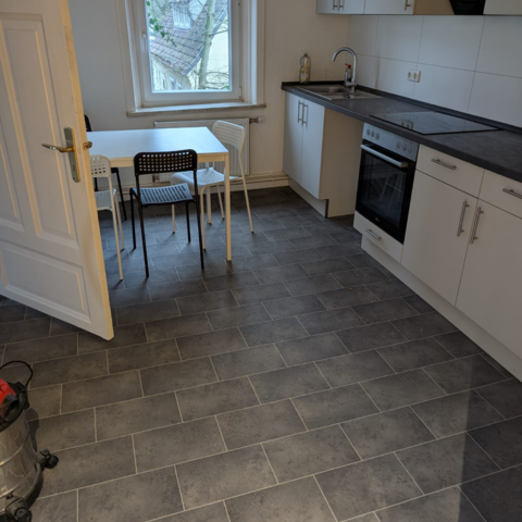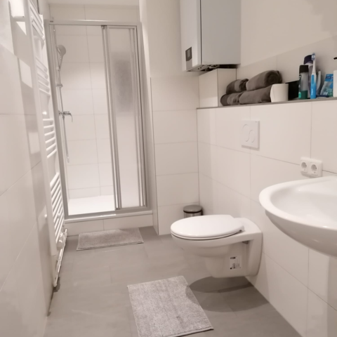 Die Wohnung verfügt über zwei möblierte Zimmer, die sowohl als Einzel- sowei auch als Doppel- bzw. Dreibettzimmer genutzt werden können, eine Küche mit Essbereich, einen Flur und ein modernes Duschbad.