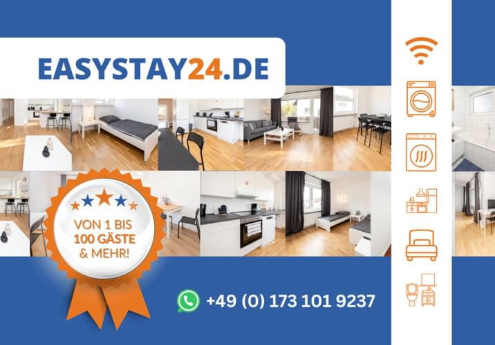 Wir vom Team Easystay24 freuen uns auf Ihre Anfrage – per Telefon, E-Mail oder WhatsApp sind wir jederzeit für Sie erreichbar. Ihr angenehmer und reibungsloser Aufenthalt liegt uns am Herzen, und wir kümmern uns um Ihre Anliegen!