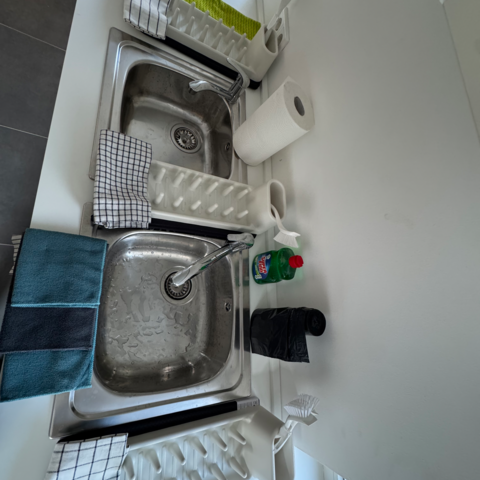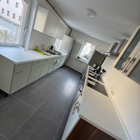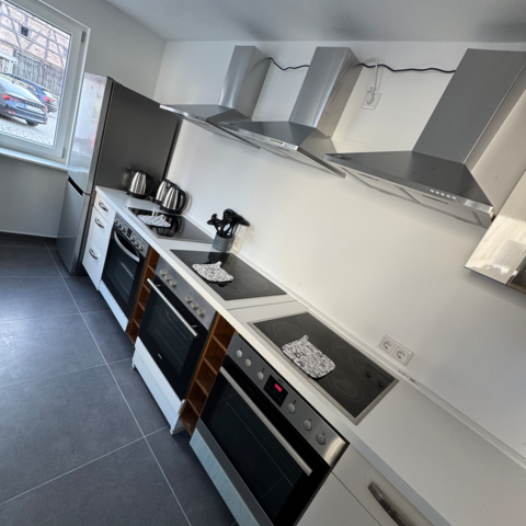 - Große Küche mit 3 Herdplatten und 2 Waschbecken
