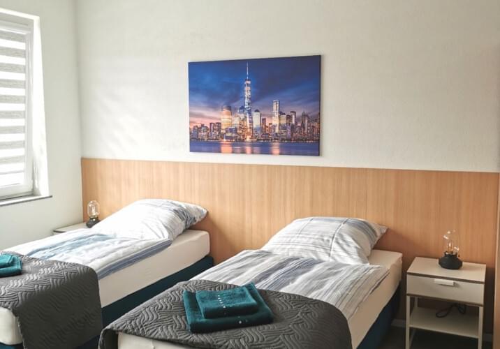 3 geräumige Zweibettzimmer mit bequemen Hotelbetten 90 x 200 cm,