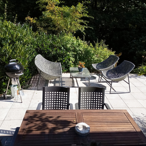 Feriengäste die schöne große Grill-Terrasse nutzen und hier nach erfolgreichen Tag nach Herzenslust Chillen und die Natur in vollen Zügen genießen.
