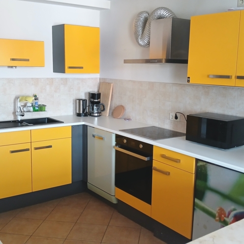 - Eine voll ausgestattete und moderne Küche mit allen Küchenutensilien. (Eine Kaffeemaschine, ein Toaster, Ein Wasserkocher und eine Mikrowelle sind ebenfalls vorhanden).
