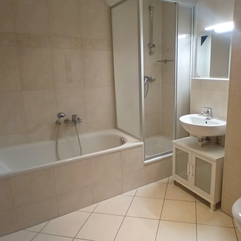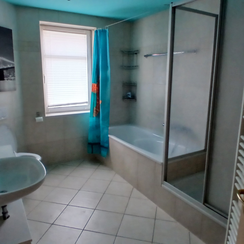 - Ein Bad mit zwei getrennten Toiletten und einer Dusche.
