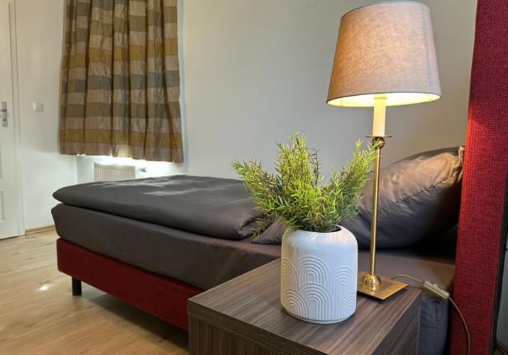 Unsere Monteurzimmer sind natürlich möbliert und verfügen über getrennte Betten, Schrank und Kühlschrank (je eins pro Zimmer), je Zimmer ein separates Bad mit Dusche/WC.