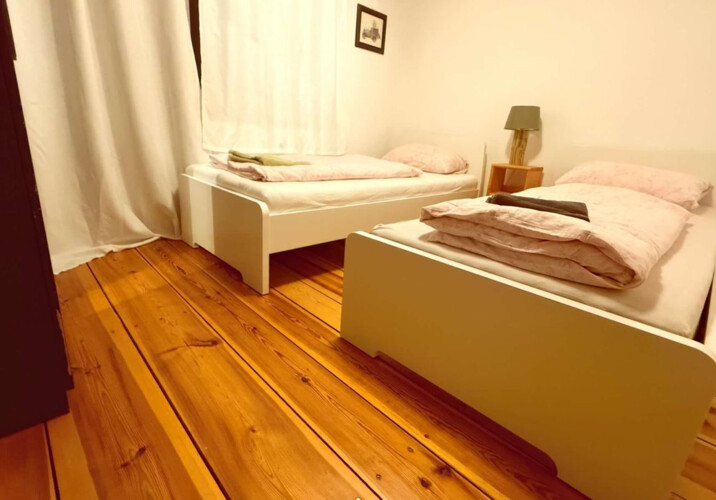 • 1 Schlafzimmer mit einem Doppelbett (auf Wunsch auch zwei Einzelbetten möglich), Nachttisch und Kleiderschrank