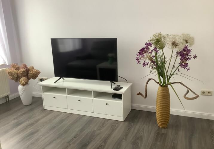 Die Wohnung ist mit WLAN und einem FlachbildTV ausgestattet.