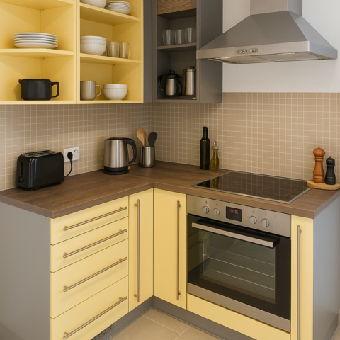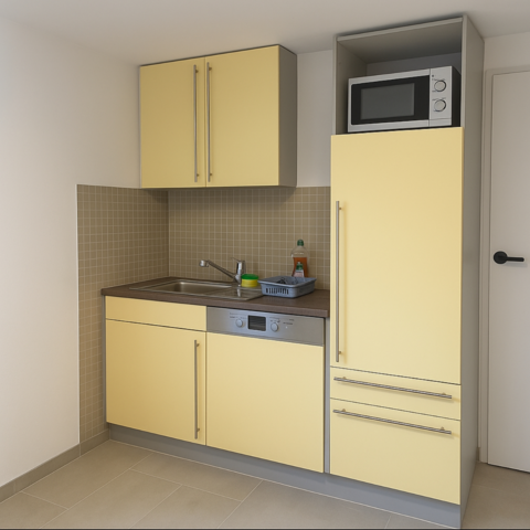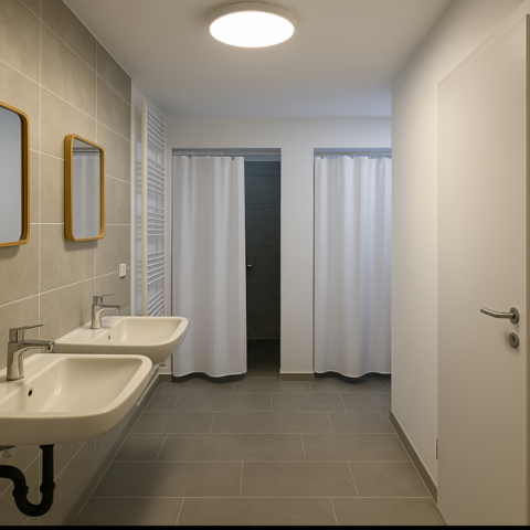Für die Selbstversorgung steht eine voll ausgestattete Gemeinschaftsküche zur Verfügung – inklusive Herd, Backofen, Mikrowelle, Kaffeemaschine, Wasserkocher, Kühlschrank und allen notwendigen Küchenutensilien. So können Ihre Mitarbeiter jederzeit kostengünstig und flexibel kochen. Moderne Badezimmer mit Dusche, Waschbecken und WC sind in ausreichender Zahl vorhanden und werden regelmäßig gereinigt. Darüber hinaus stehen Waschmaschine und Trockner bereit, sodass auch längere Aufenthalte problemlos und komfortabel möglich sind.