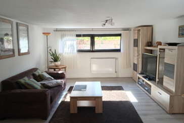 - Die ca 55qm große Wohnung befindet sich im Souterrain und verfügt über 1 Wohnzimmer mit TV 1offene Küche mit Theke und Sitzgelegenheiten,Kaffeemaschine, Kühlschrank,Herd. 1 Schlafzimmer mit Doppelbett 1 Bad mit Dusche, Waschbecken und WC. Trockner, Waschmaschine,WLAN Haustiere sind nicht gestattet.
