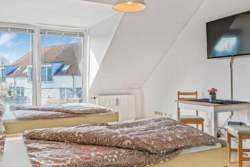 - buchbar als einzelne Zimmer mit je 2 getrennten Betten oder exklusive Wohnungen nur für Ihr Team (inkl. Bettwäsche)