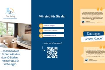 Stellen Sie Ihre Anfrage bequem auf unserer Website www.flex-living.de und erhalten Sie Ihr unverbindliches Angebot.
