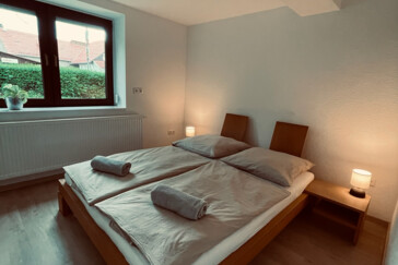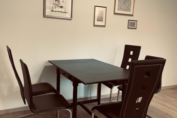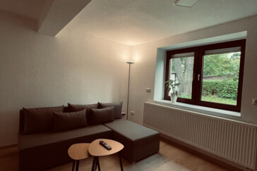 Zu der Wohnung gehört außerdem eine eigene Terrasse im Grünen mit Sitzgelegenheit. In dieser Nichtraucherwohnung sind Tiere nicht gestattet. Der Mindestaufenthalt beträgt 3 Nächte. Bevorzugt werden Monteure/Handwerker.