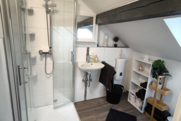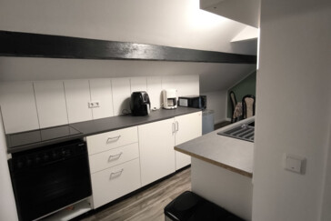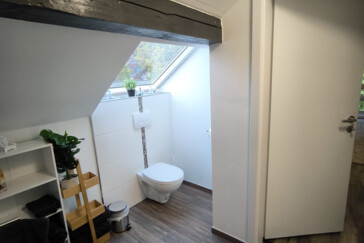 Entspannen Sie sich in Ihrer komfortablen Ferienwohnung im Dachgeschoss, die ca. 40 m² Wohnfläche bietet.