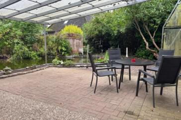 • Wohnung 1: direkter Zugang zum Garten mit Fischteich und überdachter Terrasse