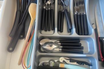 Voll ausgestattete Küchen (Backofen/Herd, Mikrowelle, Kaffeemaschine, Wasserkocher, komplettes Geschirr). Besonderheit: Extragroßer Kühlschrank und ein Geschirrspüler. Kosteneffiziente Selbstversorgung und gemeinsames Kochen.