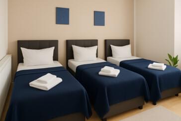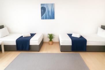• Bequeme, getrennte Einzelbetten – ideal für Kollegen