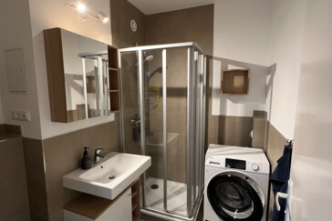 - Modernes Badezimmer mit Dusche und Waschmaschine