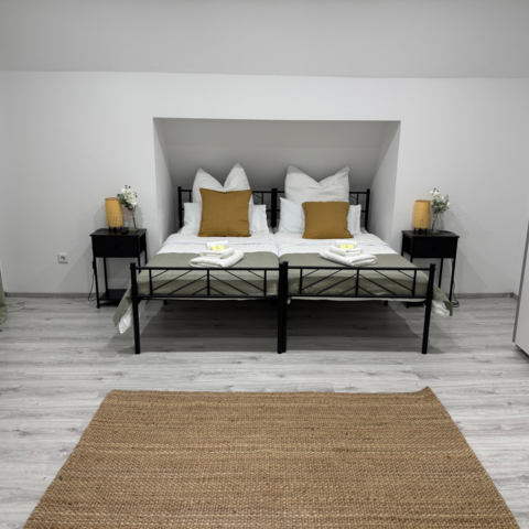 Im 2. Obergeschoss befindet sich ein großes Schlafzimmer mit Doppelbett, das zusätzlichen Komfort und Rückzugsmöglichkeiten bietet.