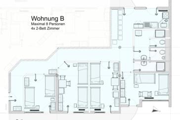 • Eigenes Bad (separate WCs/Urinal, siehe Grundriss)