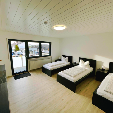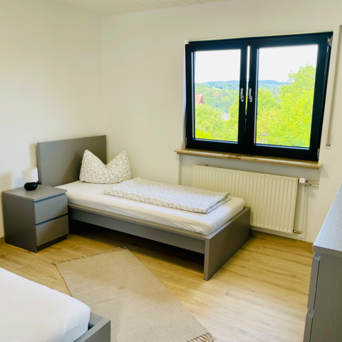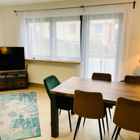 Voll ausgestattete Monteurunterkunft mit ca. 100 m² Wohnfläche, ideal für 2 bis 7 Personen. Die Wohnung befindet sich zentral im Ortskern – Einkaufsmöglichkeiten, Gastronomie und gute Verkehrsanbindung sind direkt vor Ort.