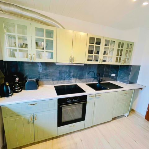 • Küche voll ausgestattet: Ceranfeld, Backofen, Spülmaschine, Kühlschrank mit Gefrierfach, Mikrowelle, Kaffeemaschine, Wasserkocher, Toaster