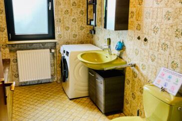 • Badezimmer mit Dusche, WC, Waschmaschine