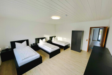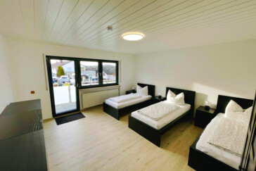 Voll ausgestattete Monteurunterkunft mit ca. 100 m² Wohnfläche, ideal für 2 bis 7 Personen. Die Wohnung befindet sich zentral im Ortskern – Einkaufsmöglichkeiten, Gastronomie und gute Verkehrsanbindung sind direkt vor Ort.