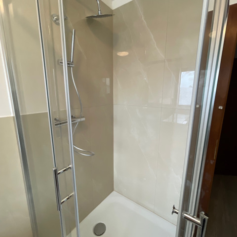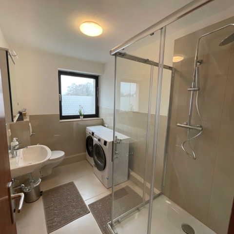 Das Bad hat eine Dusche, WC und Waschmaschine. Hygiene-Artikel (Seife, Shampoo, Zahnbürste, Zahnpasta) sind im Preis inklusive. Beide Zimmer sind mit einem TV ausgestattet und verfügen über jeweils 2 Einzelbetten. Es kann noch eine fünfte Person auf dem Schlafsofa übernachten. Die Ausstattung ist modern und hochwertig. Ventilator in jedem Zimmer vorhanden.