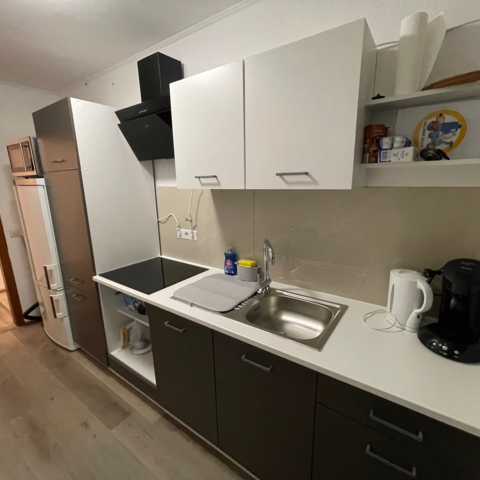 Flat 1 ist eine 2-Zimmerwohnung mit voll ausgestatteter Küche mit Kühlschrank, Mikrowelle, Herd, Toaster und Kaffeemaschine.
