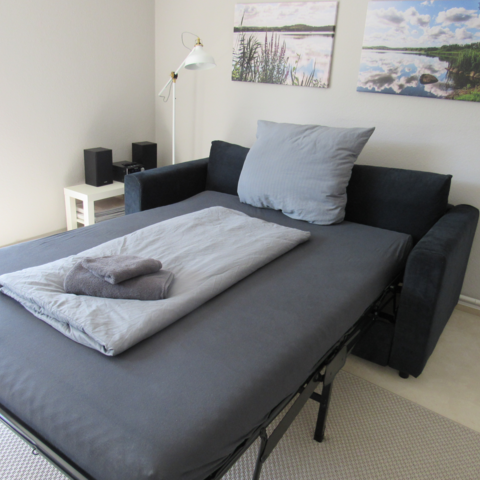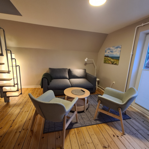 Die Wohnung im Erdgeschoss bietet Platz für 4 Personen in zwei Schlafzimmern mit jeweils zwei komfortablen Einzelbetten. Die 5. Person findet auf dem gemütlichen Schlafsofa im Wohnzimmer Platz. Zur Wohnung gehören ein modernes Badezimmer mit Dusche sowie eine voll ausgestattete Küche für die problemlose Selbstversorgung. Ein besonderes Highlight ist der Kaltwintergarten, der ideal als zusätzlicher Aufenthaltsbereich oder zum Entspannen nach Feierabend genutzt werden kann.