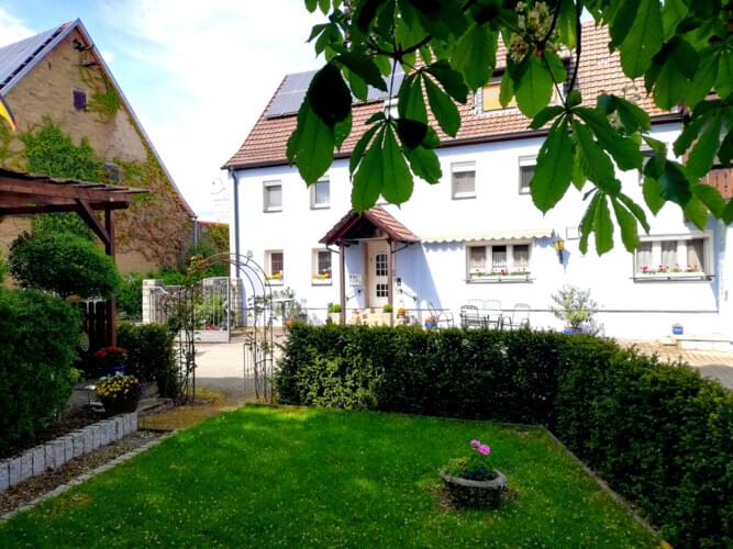Erfahren Sie in unserem Familienbetrieb freundliche, fränkische Gastlichkeit. Unser Gästehaus liegt über dem Maintal des südlichen Maindreiecks nahe des ehemaligen Erlacher Wasserschlosses.