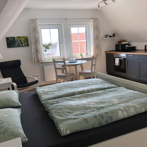Wir verfügen seit September 2021 über insg. 3 Ferienwohnungen und den Herbergsraum, insg. 14 Betten in 5 Schlafräumen.
