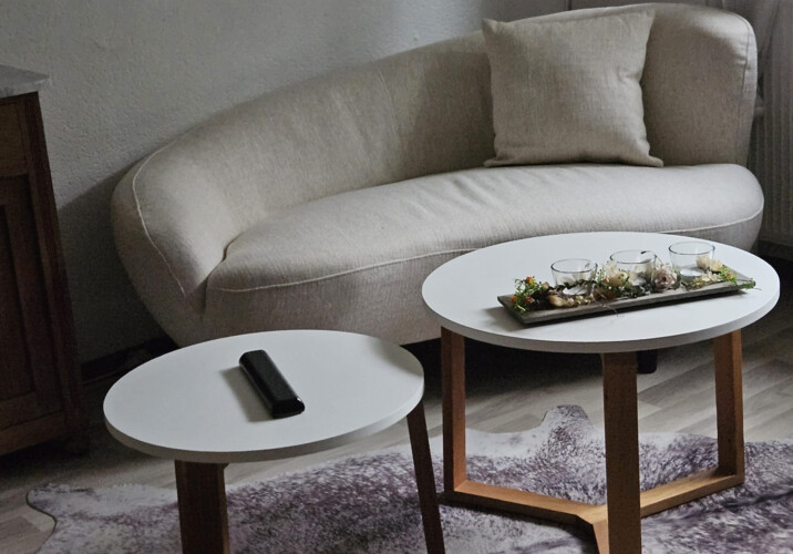 Kellerwohnung mit separatem Eingang, 58qm, Schlafzimmer für zwei Personen, Wohnzimmer mit zwei Schlafsofas, separate komplette Einbauküche mit Essbereich, großes Bad mit Dusche. Im Sommer kann die überdachte Pergola vor dem Eingang mitbenutzt werden.
