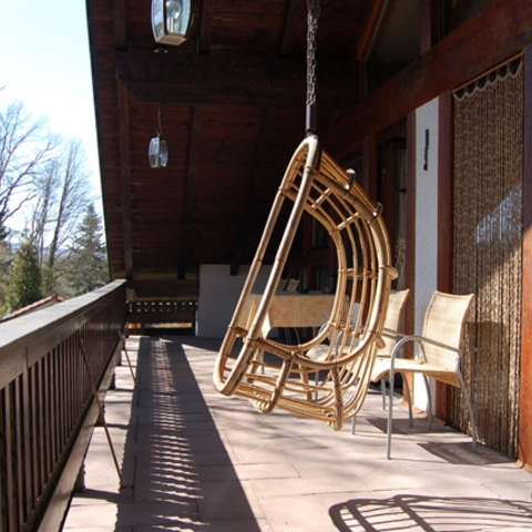 Auf dem großen überdachten Balkon genießen Sie eine herrliche Aussicht! Eine Waschmaschine und ein Trockenraum für Ihre Wäsche stehen Ihnen bereit.