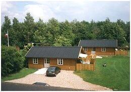 Die Ferienhäuser bieten 2 Schlafräume mit je 2 Betten, einen Wohn-/Schlafraum mit Alkoven, eine Sitz- und eine Essecke, sowie eine Küche, einen Flur und ein Bad mit Dusche/WC.