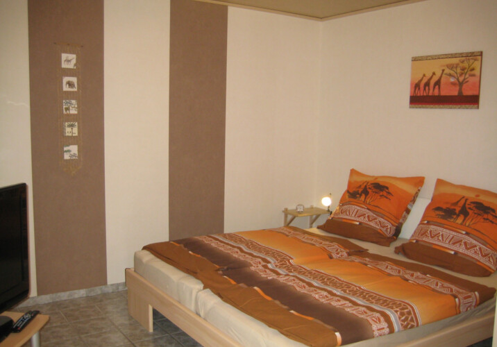 Der gemütliche und einladende Wohn-Schlafraum ist mit einem  Fernseher ausgestattet.