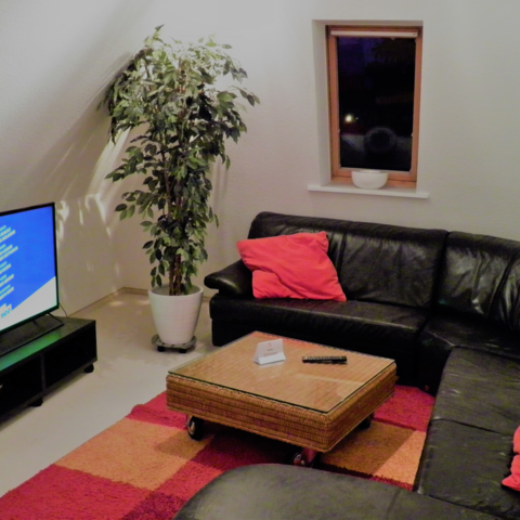 Die 1. Fewo (DG) 1 Wohnzimmer, Bad mit Wanne, Küche (mit Balkon) und eingerichtet mit allem was das Herz begehrt.