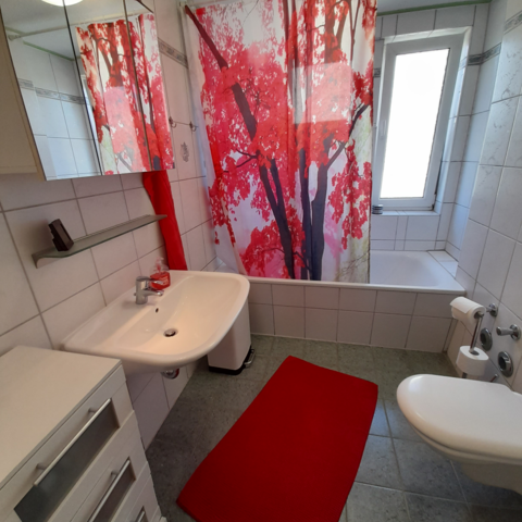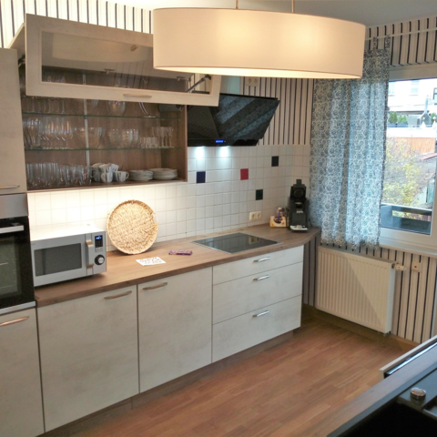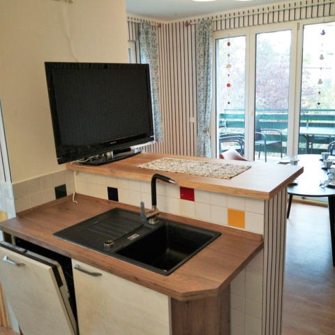 Die 2. Fewo (OG) 1 Wohn- Küche voll eingerichtet und Zugang zu 2 Balkons, Bad mit Wanne für gemütliches entspannen.