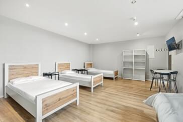 Alle Monteurzimmer haben ein eigenes Bad. In jedem Zimmer steht ein Bett mit Tisch und Sitzgelegenheit. Zudem hat jedes Zimmer einen Flachbildschirm (TV) und kostenloses W-LAN!