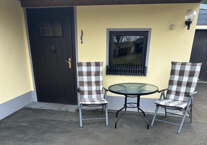 2 Schlafzimmer, Wohnzimmer mit TV, Küche mit Kühlschrank-Gefrierkombi, Bad mit Dusche, überdachte Terrasse