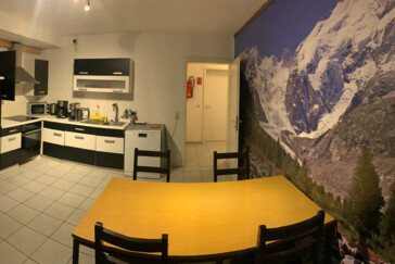 - Große, voll ausgestattete Küche mit Esstisch (Töpfe, Pfannen, Besteck, Kaffeemaschine, Wasserkocher, Spülmaschine, Kühlschrank usw.)