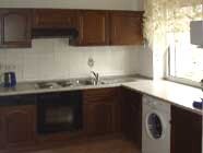 in der Küche mit Spühlmaschiene, Herd mit Zeranfeld, Backofen, Kühlschrank, Gefrierschrank, Mikrowelle, Senseo-Pads-Kaffeemaschine, Toaster, Wasserkocher, Besteck, Kochutensilien, Töpfen und Pfannen,