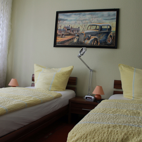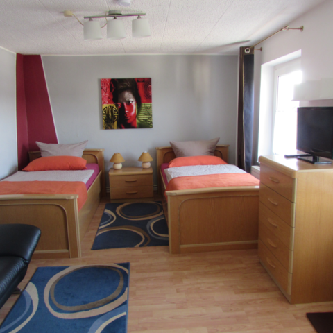 2 Doppelzimmer, separate Eingänge (Einzelbetten) mit eigenem Bad/ WC, Miniküche mit Kühlschrank, Kaffeepatautomat, Wasserkocher , TV und W-Lan