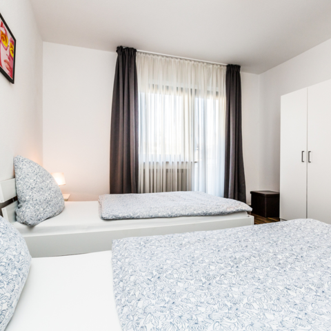 Die voll ausgestattete Monteurwohnung befindet sich im 1. Obergeschoss eines Apartmenthauses in Köln-Mülheim und bietet auf 55 qm Platz für bis zu 4 Personen. Zur Ausstattung gehören 1 Schlafzimmer (20 qm), 1 Schlafzimmer (15 qm) mit Balkonzugang, eine Küche mit Essbereich sowie ein Bad mit WC.