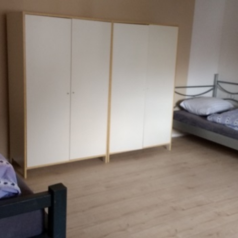 Alle Zimmer sind mit bezogenen Betten und Schränken ausgestattet.