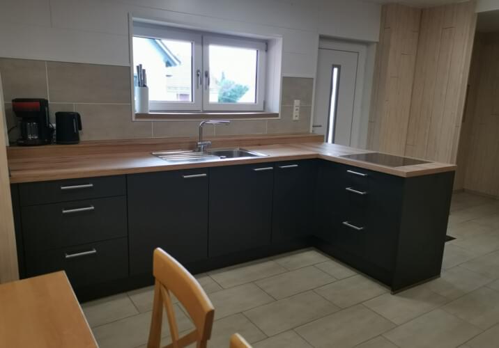 Jede Wohnung ist voll ausgestattet: Bad mit Badewanne und oder Dusche, WC , Waschbecken sowie Küche mit Einbauküche (Töpfe, Gläser, Geschirr, Teller, Becher, Herd, Kühlschrank,Wasserkocher, Mikrowelle …OHNE Backofen) und Sitzmöglichkeit.