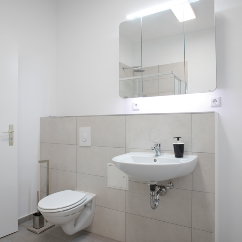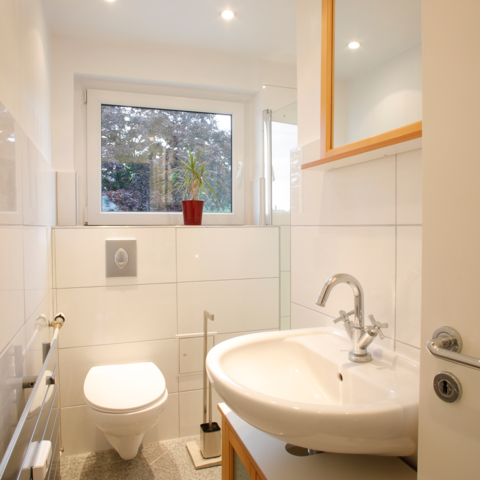 Für die 3 Gästezimmer im 1. und 2. OG wurden 2 Badezimmer neu errichtet, wovon sich eines im 1.OG und das zweite Badezimmer im 2. OG befindet, jeweils ebenfalls mit Fenstern zum Öffnen für viel frische Luft.